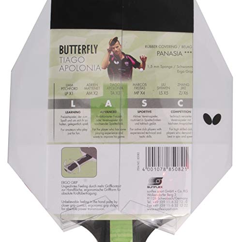 Butterfly Tiago Apolonoa TAX3 - Mazza da ping-pong, approvata ITTF, 1,5 mm, in gomma Pan Asia