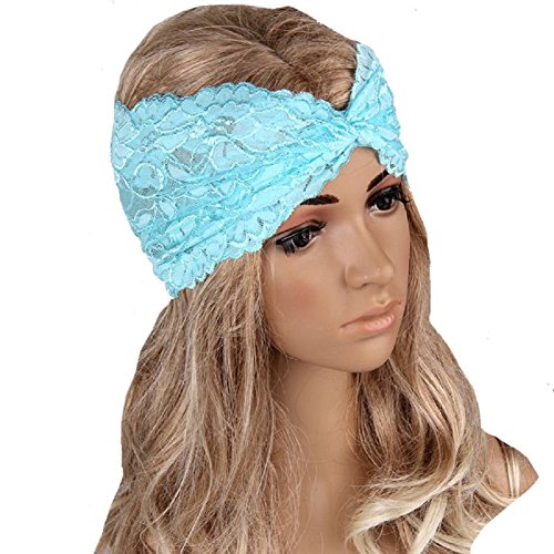 Butterme del merletto delle donne Retro Turbante Twist fascia dell'involucro della testa Foulard (Azzurro)