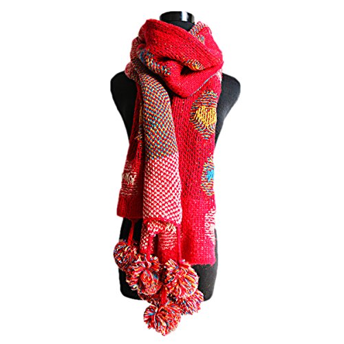 Butterme Sciarpa lavorata a maglia delle donne inverno caldo sciarpa Halstuch puntino variopinto Pois a maglia Boemia sciarpa del tubo estraibile bolle 200 x 36cm-6 colori (Rosso)