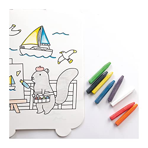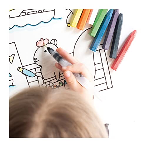 Contenuto: 8 gessetti per burro, nei colori nero, viola, blu, verde, rosso, arancione, giallo, bianco e una matita ad acqua con punta a pennello.