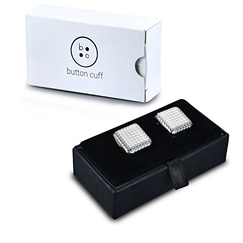 Button Cuff BUTTONCUFF Copribottoni per Camicia - Alternativa ai Gemelli - Ideali per Abiti e Smoking, Camicie Eleganti e Casual, Maglia Argento, 18