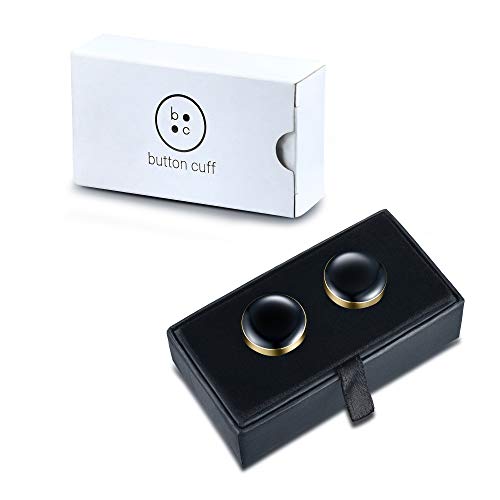 Button Cuff BUTTONCUFF Copribottoni per Camicia - Alternativa ai Gemelli - Ideali per Abiti e Smoking, Camicie Eleganti e Casual, Nero & Oro, 18