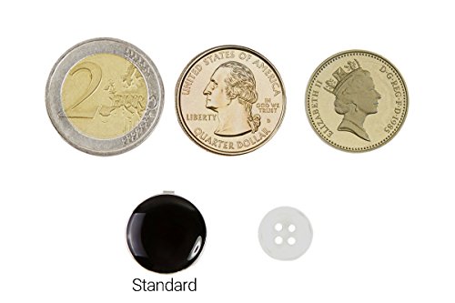 COME FUNZIONANO? Si adattano a bottoni di diversa dimensione. Basta aprire la base, inserire il bottone nell'apposito alloggiamento e chiudere la clip, semplice! I modelli da 18 mm hanno dimensioni simili a quelle di una monetina e possono essere indossati su polsini o sul colletto della camicia;