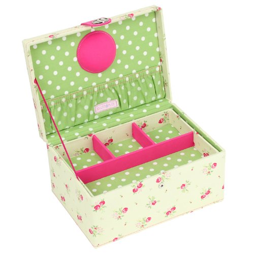 BUTTON IT- NEW FOR 2014 - Country Floral Medium Cream Floral Sewing Box with Green Polka Dot Lining