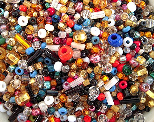 The Bead and Button Box - 40g over 1000+ Mixed Glass Seed & Bugle Beads 2-7mm Jewellery Making Sewing Bead Art
