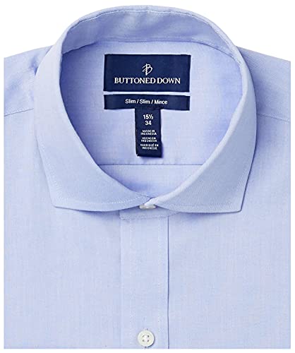 Buttoned Down Camicia Vestito con Spillo e Colletto alla Francese No-Stiro in Cotone Supima Slim Uomo, Blu, 38 Collo / 86 Manica