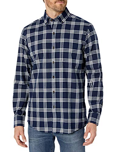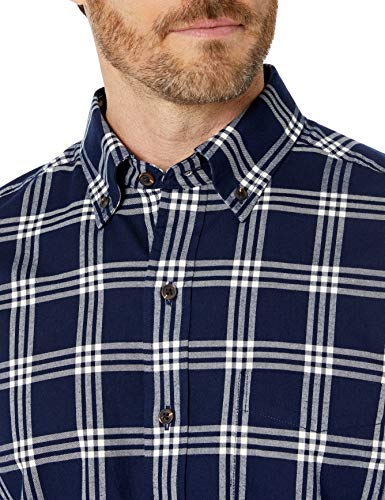 Buttoned Down Tailored Fit Supima Cotton Brushed Twill Plaid Sport Shirt Button-Down-Shirts, Navy/White, US S (EU S)