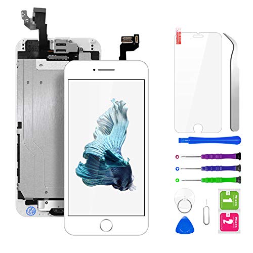 ✅ 【Installazione Semplice】 iphone 6 display Il pulsante home dell'iPhone, l'auricolare, la fotocamera frontale e il sensore di prossimità sono pre-assemblati. Tutto quello che devi fare è trasferire il pulsante Home originale sul nuovo dispositivo sostitutivo. Costa meno tempo per l'intero scambio (se si desidera che l'opzione Touch ID funzioni, è necessario utilizzare il pulsante Home originale dal vecchio display)