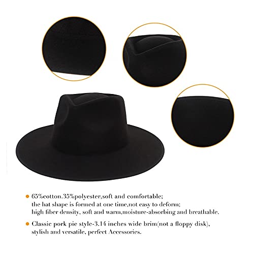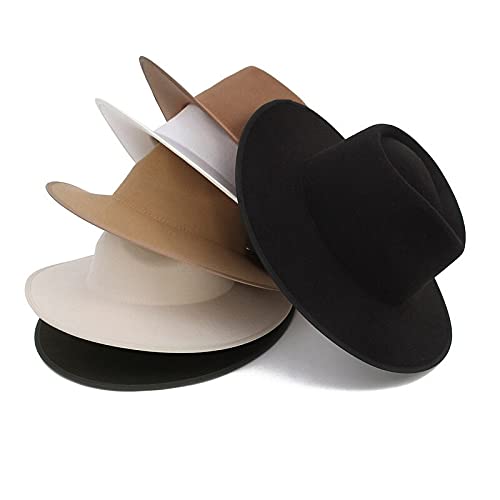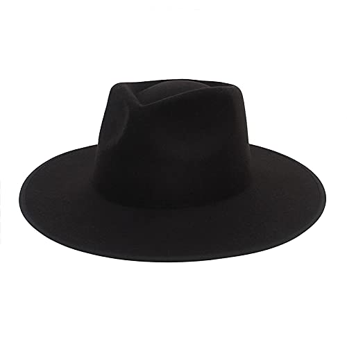 BUXIANGGAN Fedora Trilby Cappello Fedora Cappello in Feltro Cappello A Tesa Larga Donna Cappelli Donna Uomo Jazz Church Sombrero Cappelli 56-58 Cm Nero