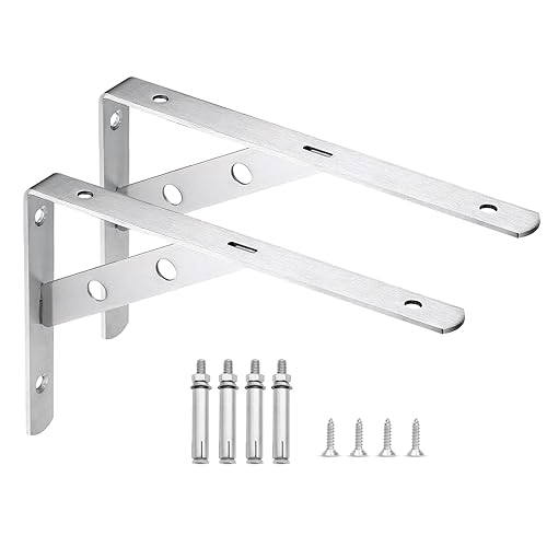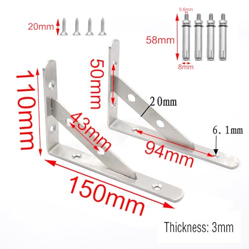 BuxiuGK 2 Pezzi Supporto per Mensole Pesanti Reggimensola a muro reggimensola 90 Gradi Angolo Staffe per Tavolo da Muro in Acciaio Inossidabile con le Viti,150 x 110 x 20mm,Argento