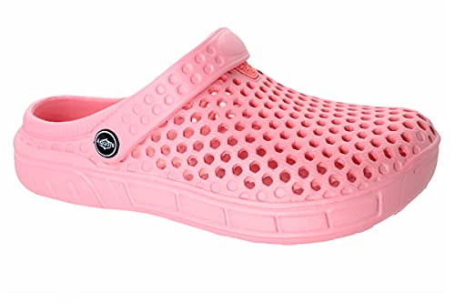 BuyAzzo Clogs - Pantofole per bambini, per il bagno, per il tempo libero, da giardino, con cinghie sul tallone, misura 30-35, (Colore: rosa.), 34 EU