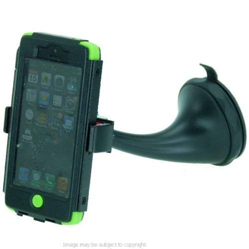 Il supporto per auto con ghiera in gomma Twist 'n' Lock Spring-Grip per iPhone 5 è costruito con un braccio rigido da 13 cm (5,12 ") che agisce per ridurre le vibrazioni e offre una maggiore portata per i parabrezza profondi.