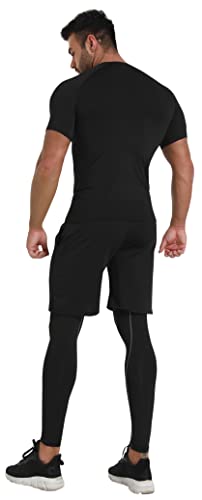 BUYJYA 5 Pz Uomo Compressione Pantaloni Camicia Top Manica Lunga Giacca Atletica Set Palestra Abbigliamento Uomo Allenamento