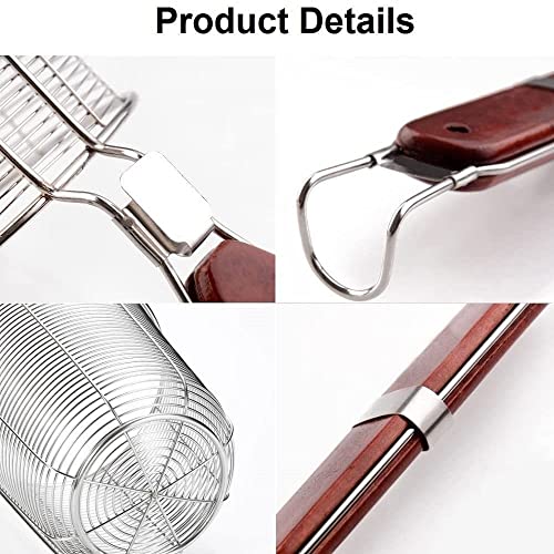 BUZIFU Setaccio in Filo di Acciaio Inossidabile Setaccio per Pasta Setaccio Colino per Alimenti Cestello a Rete Fine Cestello per Friggere con Manico in Legno per Risciacquare Pasta, Noodles, Frutta