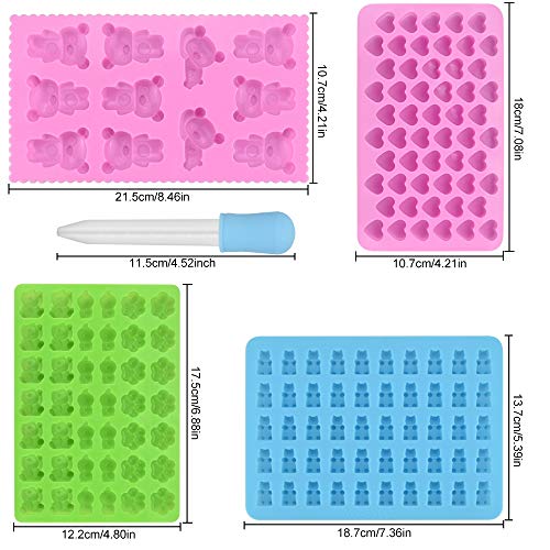 BUZUFU 4 Pezzi Stampi in Silicone per Caramelle Mini Stampi per Caramelle Gommose Stampi in Silicone per Cioccolato Stampi per Orsetti Gommosi con 2 Contagocce per Caramelle Biscotti e Cioccolato