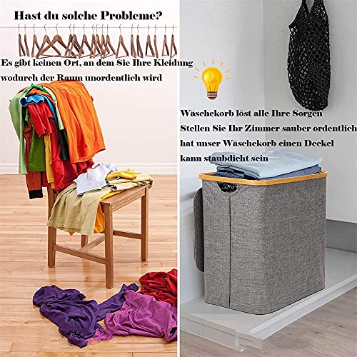 BVHOTO Cesta portabiancheria con coperchio, pieghevole da 60 litri, contenitore in tessuto Oxford, per riporre giocattoli, ufficio, armadio