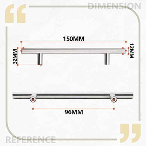 Bwintech 6 maniglie da 150 mm (96 mm) in nichel spazzolato maniglie da cucina a T bar in acciaio inossidabile, ideali per armadietti, cassetti, credenze
