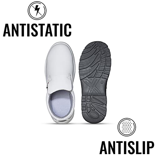 Protezione di sicurezza: scarpe da lavoro uomo e donna/scarpe da cucina uomo e donna con protezione di sicurezza S2 SRC offrono una vestibilità extra ampia e una punta in materiale composito (S2). Sono dotati dello standard di protezione delle dita CE EN ISO 20345, che offre sicurezza contro oggetti pericolosi che cadono durante il lavoro.