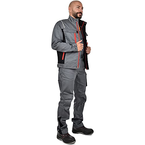 BWOLF Raptor - Giacca da lavoro da uomo in 100% cotone, giacca multifunzione con tasche multifunzionali e strisce riflettenti, grigio., XXL
