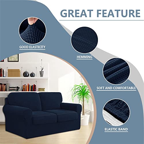 BXFUL Fodera per Divano in 5 Pezzi, con Schienali Separati E Cuscini con Fascia Elastica, Tessuto Jacquard Spandex A Quadri (Blu navy)