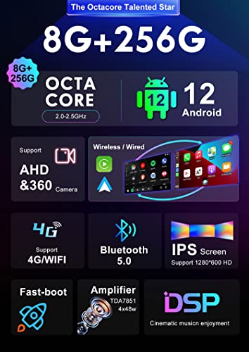 【 WIRELESS CARPLAY - ANDROID AUTO - DSP 】 Carplay wireless integrato e Android Auto, il funzionamento è diventato molto più semplice e divertente. Ciò rende l'invio di messaggi e contatti e anche la ricerca delle canzoni giuste per completare la tua esperienza di guida. DSP ha un processore completamente digitale chip e modalità a doppia precisione a 64 bit. Goditi gli effetti sonori VIP in luoghi diversi in base alle tue esigenze.