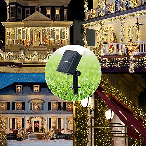 BXROIU Catena Luminosa led Solare per esterni,[2 pezzi]100 LED in filo d'argento da 10 metri Catena luci solare per Giardini, Patio, Case, Festa di Natale (bianco caldo)