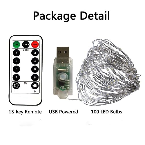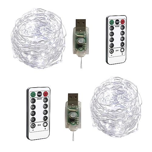 BXROIU 2 X100LEDs Luci a Stringa su 10metri Micro filo d'argento,Spina USB con Telecomando 8 programma (bianco freddo)