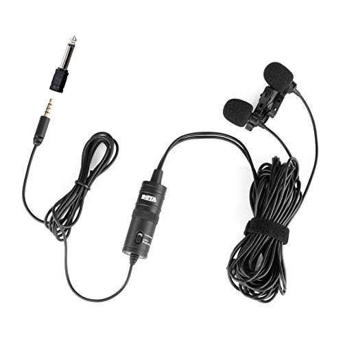 BOYA BY-M1DM Doppio microfono lavalier, microfono omnidirezionale a condensatore vivavoce a clip con connettore stereo da 1/8" per fotocamera, DSLR, iPhone, Android