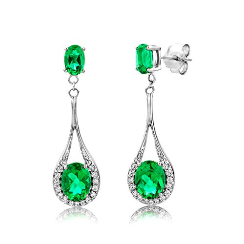 Orecchini pendenti con smeraldo artificiale dalla forma ovale e luminosi zirconi taglio brillante