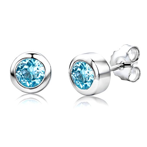 ByJoy Orecchini Donna Solitario a Lobo Piccoli con Topazio Bul Sky in Argento Sterling 925