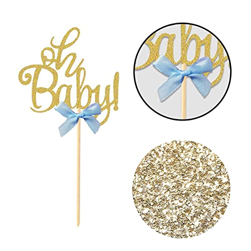 Bymivofun 24 pz Toppers per Cupcake con Glitter Oh Baby, Topper per Cupcake con Rivelazione di Genere, per Compleanno, Matrimonio, Battesimo, Baby Shower, Decorazioni per Feste per Bambini