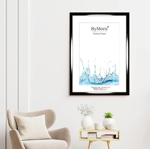 ByMoris Cornice per foto personalizzata 35 x 70 cm in Nero lucido con vetro acrilico antiriflesso, poster puzzle ritratto cornici in legno