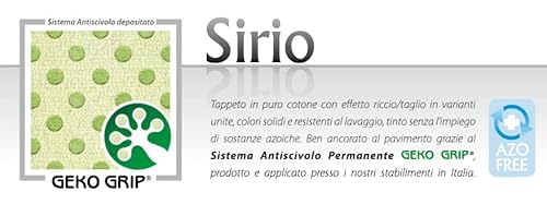 CARATTERISTICHE: Il tappeto è delicato al tatto con effetto velluto, il materiale da cui è composto è 100% cotone ed è privo di sostanze inquinanti e conforme allo standard Oeko tex. I tappetini sono testati e privi di sostanze nocive, hanno il lato inferiore antiscivolo ed è testato anche su superfici molto lisce. Il loro alto spessore permette di poterlo utilizzare per lungo tempo senza lavarlo spesso.