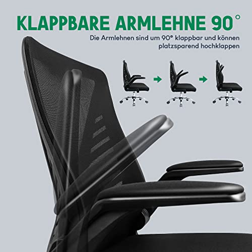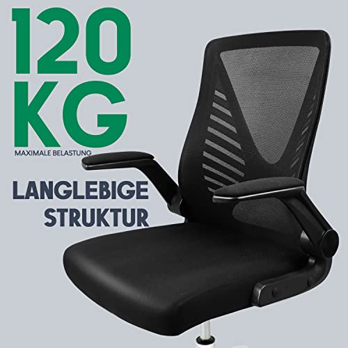 BYRORAS Sedia da ufficio con schienale pieghevole e braccioli, sedia girevole con altezza regolabile e seduta ergonomica, portata massima 120 kg