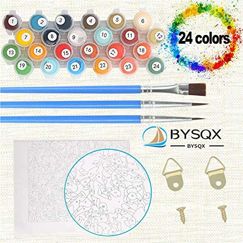 【Kit di pittura fai-da-te con i numeri】 Include 1 pittura a olio prestampata su tela di lino (escluso il bordo), 1 set di pigmenti acrilici, 1 set di pennelli. La dimensione della tela: 40 x 50 cm