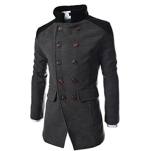 BYSTE Autunno Inverno Uomo Formale Doppio Petto capire Cappotto Giacca di Lana Lungo Giacca Trincea Lungo Bottone Capispalla (Grigio, IT 52)