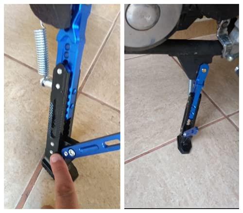 2. 【Design antiscivolo】 La parte inferiore del treppiede della motocicletta ha filettature, che possono stare in piedi senza scivolare, aumentare l'attrito con il terreno e una presa salda e aumentare la stabilità della motocicletta, può aiutarti a sostenere la tua moto in sicurezza ogni volta che lo fai vuole smettere di guidare.