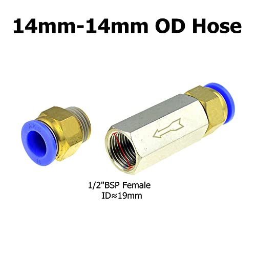 Bzcemind Valvola di ritegno pneumatica 14mm OD Tubo unidirezionale Valvola a gas aria Valvola in ottone Singola Via Compressore d'aria Adattatore per tubo CV-Blu-PC-14mm OD Tubo