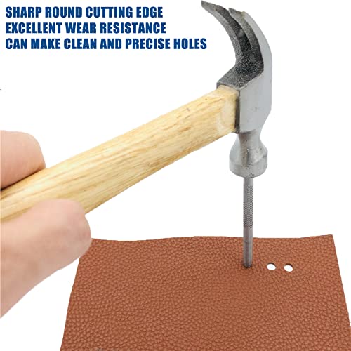 Design antiscivolo: Il punzone in pelle ha un aspetto sofisticato e bordi duri, il punzone in pelle ha un motivo antiscivolo sul manico in modo da non scivolare facilmente, ha una funzione di espulsione laterale in modo da non intasare con detriti di pelle e il manico zigrinato extra lungo consente una presa sicura. È più sicuro da usare. Il punzone emisferico incassato protegge abilmente l'attrezzatura da graffi e danni