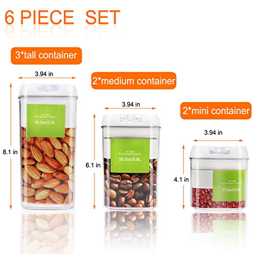 C100AE Set di 6 contenitori per alimenti con coperchi, trasparenti ermetici, in plastica, senza BPA, conservazione per cereali, frutta secca