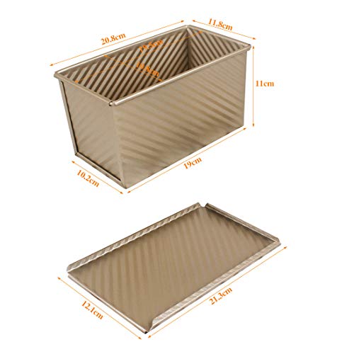 Dimensioni interne: 19 x 10,2 x 11 cm / 7,5 x 4 x 4,3 pollici. La teglia ha un coperchio scorrevole, che può essere realizzata in uno spazio ristretto. Il pane può essere utilizzato anche per il pane tradizionale rialzato senza coperchio. Puoi scegliere se utilizzare il coperchio in base alle tue preferenze