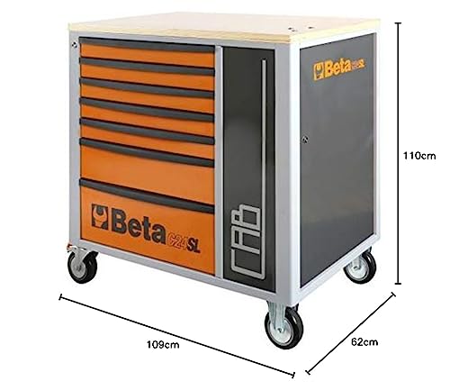 Beta C24SL-CAB/G Cassettiera per Attrezzi Portatile con 7 Cassetti e Armadietto Porta Oggetti - Grigio