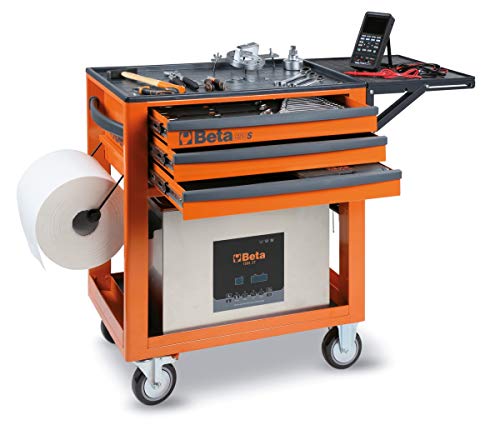 BETA C50S-O Carrello di Servizio con 3 Cassetti, Portautensili con Ruote da 125 mm (Una con Freno), 3 Cassetti con Guida Telescopica a Sfera e Serratura di Sicurezza Centralizzata, Arancione
