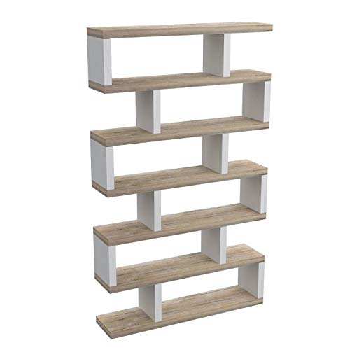 VE.CA-ITALY MENSOLA LIBRERIA ARAGON QUERCIA SHERWOOD DESIGN IN LEGNO SPESSORE 4 cm DI ALTA QUALITA' MADE IN ITALY (Quercia sherwood - Bianco frassinato)