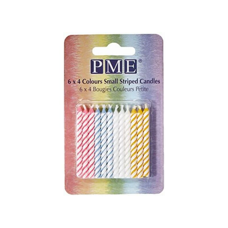 Descrizione Candeline decorative per torte e cupcake. Ideali per ogni occasione. Realizzate con cera di alta qualità. Altezza: 48 mm (1.9). Contenuto della confezione 24 x Candeline per Torte