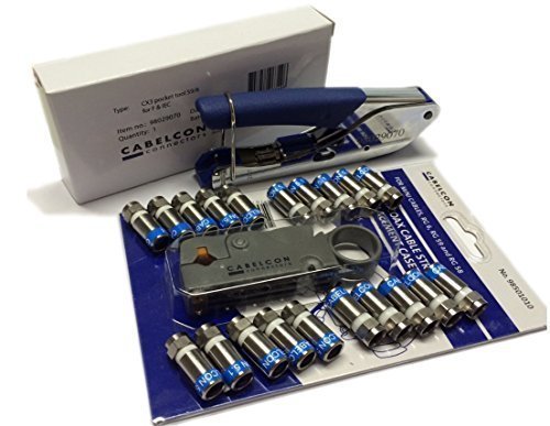Cabelcon Set composto da pinza a compressione Pocket Tool + Cable Stripper + 20 connettori F a compressione (20 STK CX3 5.1 HQ + striscia rotante)