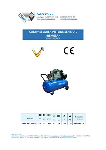 CABEX CO. S.r.l. - Compressore d'aria serie REMEZA, carrellato a pistone, trasmissione a cinghia Lt 50, 9 Bar, 3,0 Kw, 380/400 Volt. Modello [SB4/C-50.LB30-3.0 OIL]