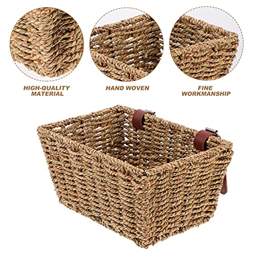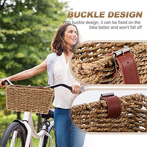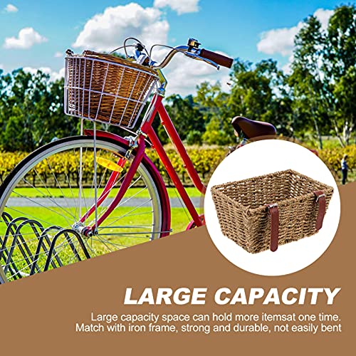 Cabilock Anteriore Del Manubrio Cestino Rattan Cestino Della Bici Vintage Vimini Cestino Della Bicicletta Scatola di Immagazzinaggio con Cinghie di Cuoio per Gli Animali Domestici Borsa