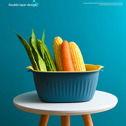 Cabilock Colino da Cucina/Set per Colino E Ciotola Set Colino in Plastica di Grandi Dimensioni Colini E Scolapasta Cestello per Lavaggio Verdure Ciotola con Filtro Autosvuotante (Giallo)