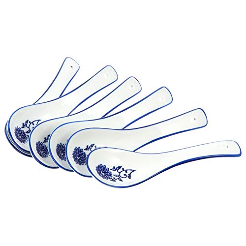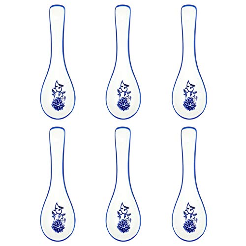 Cabilock 6Pcs Cucchiai da Zuppa di Porcellana Asiatica Cinese Coreano Giapponese Wonton Soba Cucchiai di Riso
